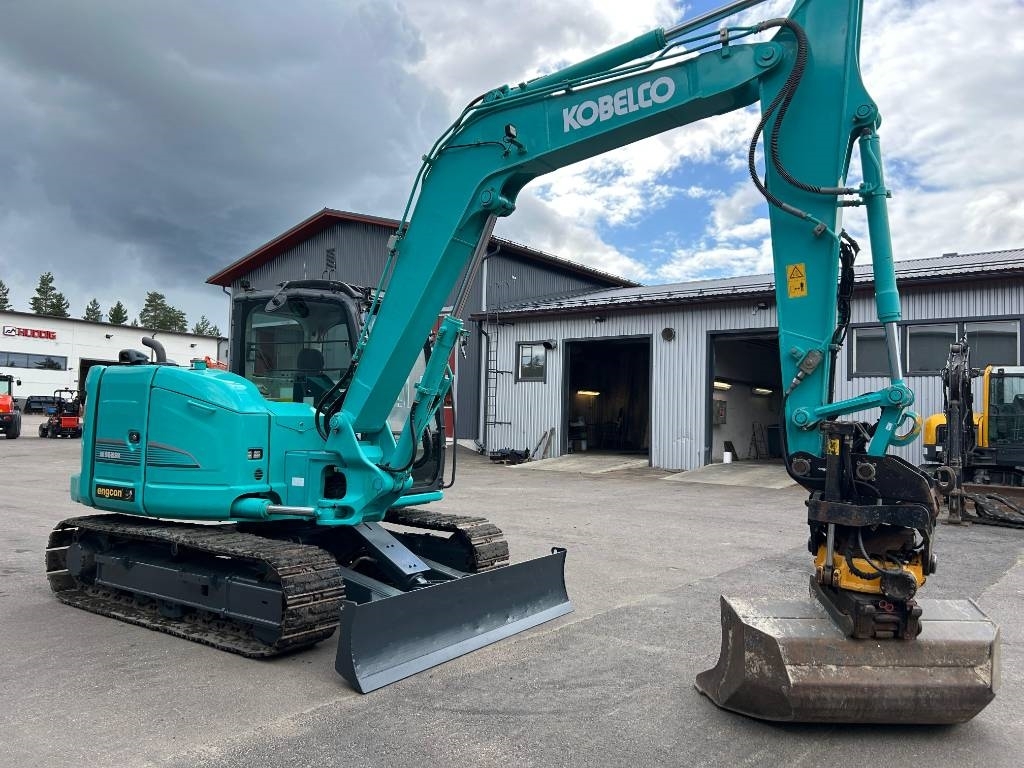 Käyttöohjekirja, ilmastointi, tankkauspumppu, kamera, Rautatelat 450mm, irroitettavat kumipäällysteet, Pikakiinnike S45 Engcon hydr.lukolla, Kauhanpyörittäjä Engcon EC209-pihtivalmius S45-S45 Mig2-kahvoilla/micropropo, Luiskakauha, kuokkakauha, lisäperäpaino, Hyväkuntoinen varusteltu kone. Sijainti Kärsämäki.