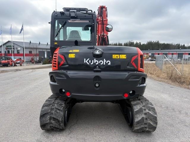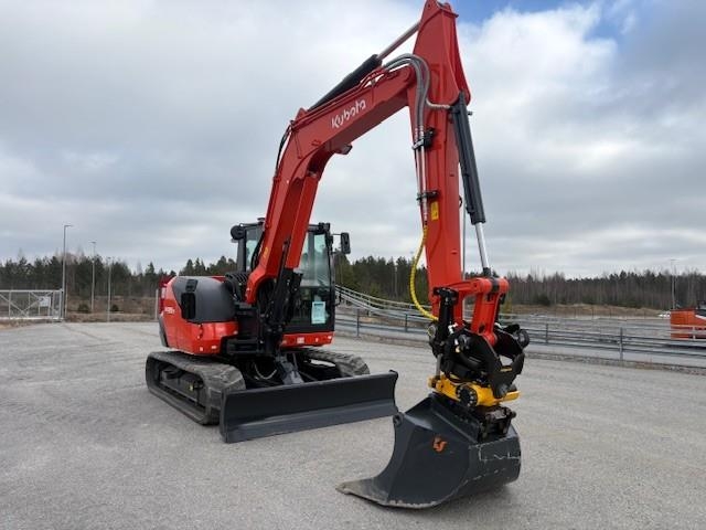 Heti toimitukseen uusi Kubota KX085-5 vakiovarusteet: ilmastointi, 2x lisähydr, ilmapenkki, kamera Lisävarusteet: -Engcon EC209 s45, Engcon mig2 propo kahvoilla -Rasvari hebonilube -lohkolämmitin -Luiskakauha 1350mm -Valaistuspaketti, LED työvalot + paneelimajakka