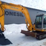 Käyttöohjekirja, Puskulevy, Tyvitaitto, Työvalot, 450mm rautatelat, ilmastointi, Tankkauspumppu, Kallistuva pikaliitin S45 hydr.lukolla (uusi), Luiskakauha 1350mm (uusi), Hienokuntoinen B-mallin kone. Sijainti Kärsämäki.